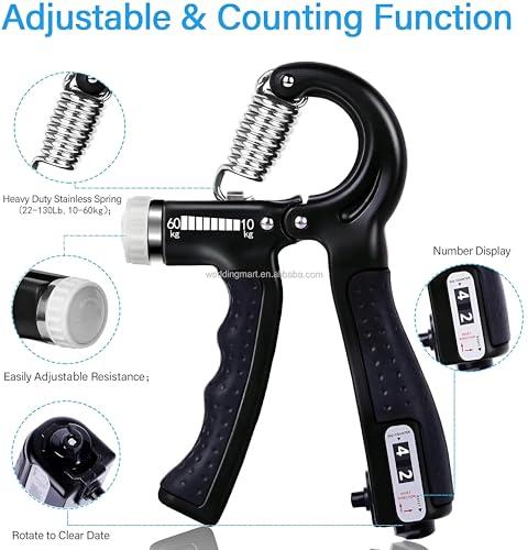 - تم تصميم قبضة اليد القابلة للتعديل مع آلية الربيع للعلاج الطبيعي ، والتي تتميز بنطاق مقاومة يتراوح بين 5 و 60 رطلا. إنه مثالي لتمارين الإصبع والمعصم والذراعين ، مما يجعله أداة متعددة الاستخدامات لتدريب القوة وإعادة التأهيل. يتوفر الجهاز بألوان متعددة بما في ذلك الأسود والرمادي والأزرق والبرتقالي ، لتلبية مختلف التفضيلات والأساليب.