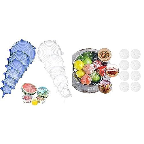 Other - اغطية سيليكون قابلة للتمدد، 6 عبوات باحجام مختلفة للاطعمة، اغطية قابلة لاعادة الاستخدام وقابلة للتوسيع - الوان متعددة+ 100 قطعة اغطية بولة قابلة لاعادة الاستخدام قابلة للتمدد من بنانا هوم (شفاف)