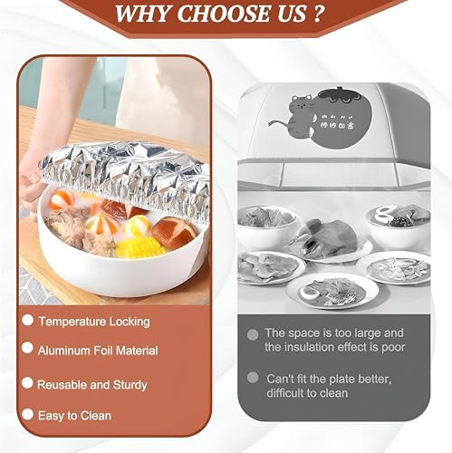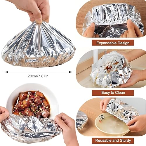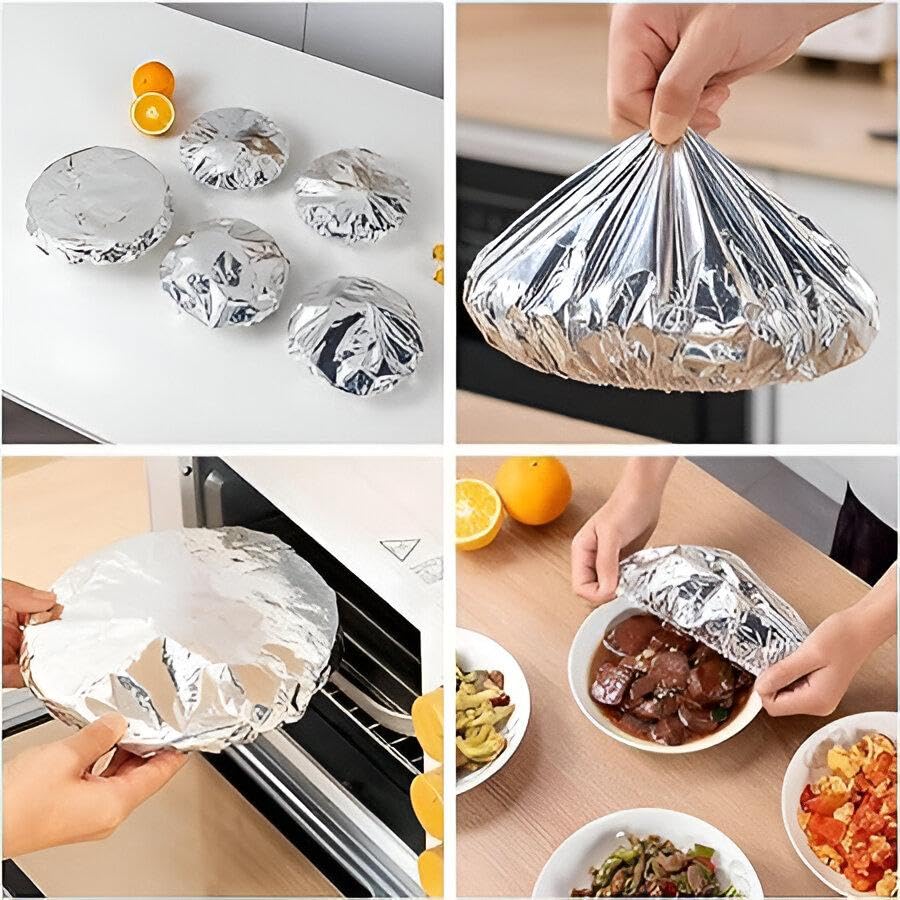 Generic - غطاء طعام مرن من الألومنيوم قابل لإعادة الاستخدام يغلق ويحافظ على حرارة الأطباق والطعام طازج لفترة أطول مناسب لمطابخ المنزل، فضي، 50 قطعة