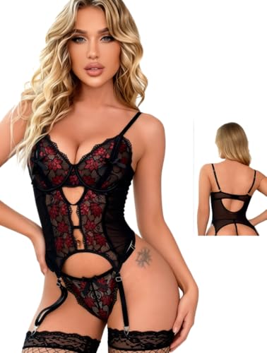 Generic - طقم لانجيري دانتيل مطاطي - مقاس واحد يناسب 50-85 كجم - حمالة صدر وبانتي مزين بالزهور من قطعتين - ملابس داخلية مطرزة جيدة التهوية - ملابس نوم انيقة للنساء