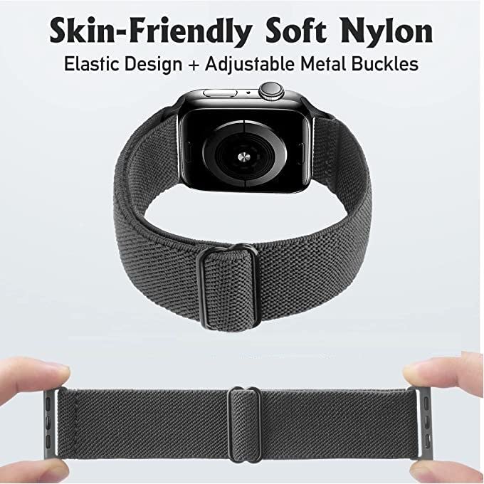 Generic - أساور نايلون بحلقة واحدة قابلة للتمدد لساعة ابل 45/44 ملم سلسلة 6/7/8، أساور مضفرة قابلة للتعديل بلون رصاصي