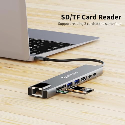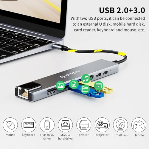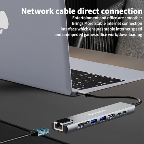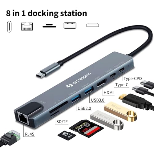 STRIFF - موزع USB-C 8 في 1 مع قارئ بطاقات SD/TF، محول من الألومنيوم نوع C مع منفذ HDMI 4K، USB 3.0، توصيل طاقة USB – C، ار جيه 45، متوافق مع ماك بوك برو M1 M2 وويندوز وايفون والهواتف الذكية من ستريف