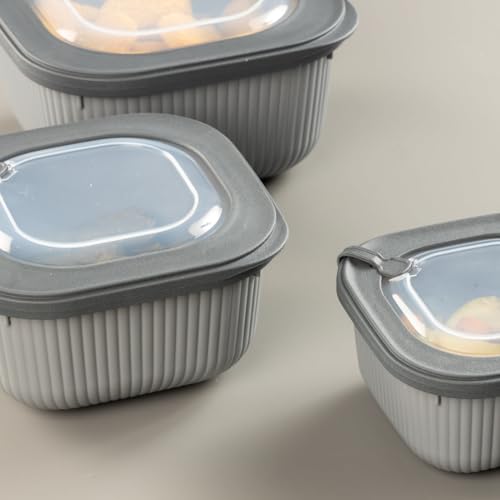 Generic - مجموعة حاويات تخزين طعام مخططة - 3 قطع حاويات محكمة الغلق مع اغطية حواف من السيليكون (600 و1100 و1800 مل) - متينة وخالية من البيسفينول ايه لتنظيم الوجبات والمخزن