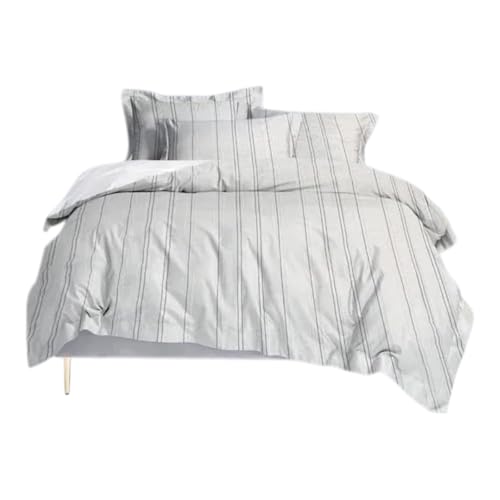 Generic - طقم لحاف مخطط، أبيض ورمادي، 235×180 سم، يتضمن لحاف وكيس مخدة 50×70 سم، قطعتين