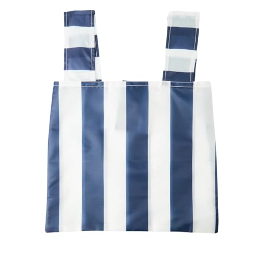 Generic - شنطة مخططة قابلة للطي 34 ارتفاع × 29 طول × 1 سم عرض، ازرق كحلي وابيض - شنطة توت بمقبض مزدوج مع اغلاق على شكل حرف V، شنطة تسوق وهدايا خفيفة الوزن للنساء - للسفر والاستخدام اليومي
