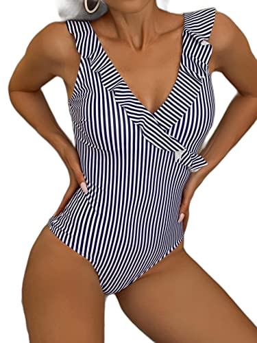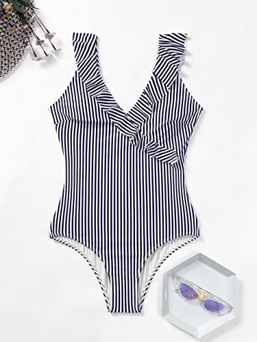 SHEIN - مايوه سباحة قطعة واحدة مخطط بكشكشة