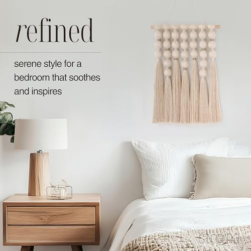 - أناقة غرفة النوم بلا مجهود – اصنع واحة هادئة بوضع هذا التعليق الجداري بلون كريمي من المكرمية فوق سريرك أو خزانة الملابس. تضيف خيوط الزاري الذهبية الدقيقة لمسة من الفخامة، بينما يمنح القطن الطبيعي والنسيج المحاك الدفء والتوازن.