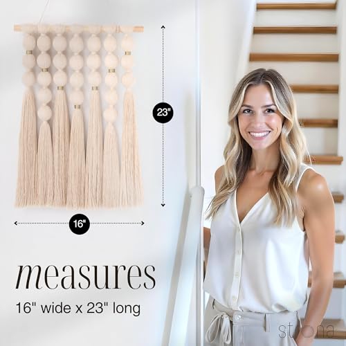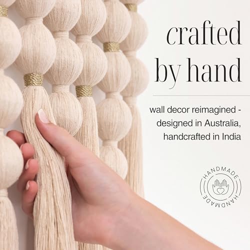 STRONA - مكرمية معلقة على الحائط سجادة بوهيمية بتفاصيل ذهبية، فن جداري من القطن الطبيعي، ديكور عضوي حديث لجدران غرفة النوم أو غرفة المعيشة أو المدخل، مصنوعة يدويًا بحرفية في الهند من سترونا 40 × 58 سم
