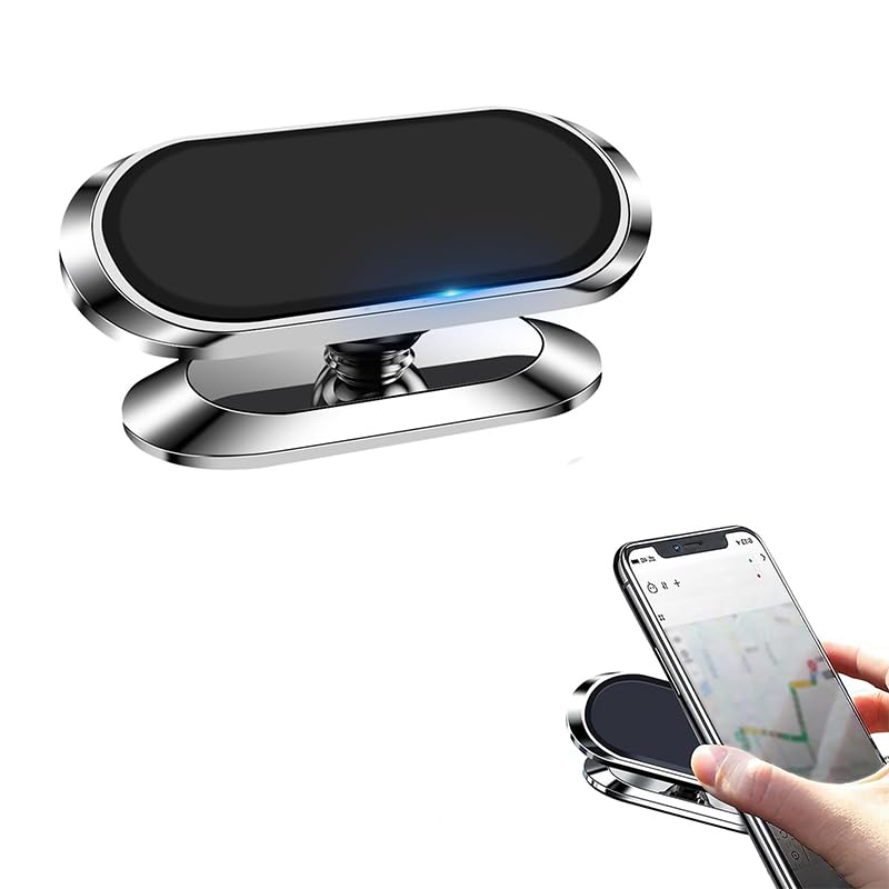 Generic - حامل موبايل مغناطيسي قوى قابل للطي والدوران والتعديل مع فتحة مشبك سلك الشاحن ، حامل موبايل عالمي للسيارة والمكتب ( سلفر ، كود :8279) - من كابر تريد