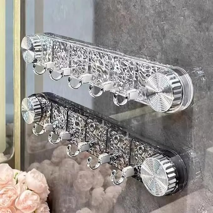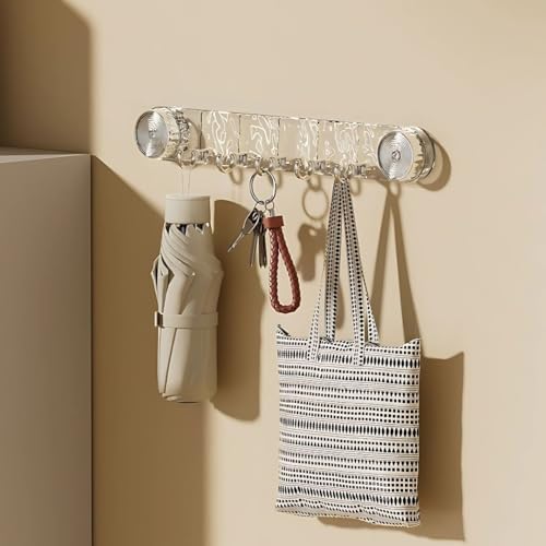 Generic - شماعة حائط قوية بدون مسامير + صبانة ذاتية التصريف مجانآ - تتحمل وزن عالي - 5 خطاف - للمطبخ والحمام وغرفة النوم تنظيم مثالي - لون شفاف اكليريك