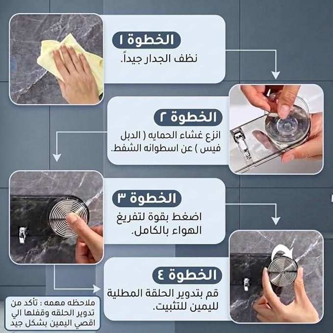 - ✅ تريب بلا أدوات: يتم تثبيتها عن طريق شفط الهواء هلف الشماعة من دون مسامير أو حفر، لا تسبب ضررًا للجدار أو الأسطح نظرًا لعدم الحاجة إلى مسامير أو ثقوب