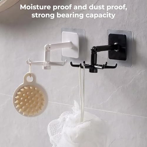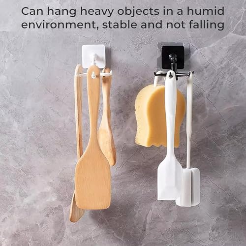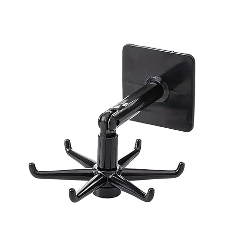 Generic - علاقة حائط بلاستيكية لاصقة أقوى بخطافات قابلة للطي 360 درجة لتعليق الرداء والمعطف والحقائب والتقويمات والمناشف والمفاتيح، مقاومة للزيوت شديدة التحمل للمطبخ والحمام، عبوة من قطعة واحدة، اسود (2)