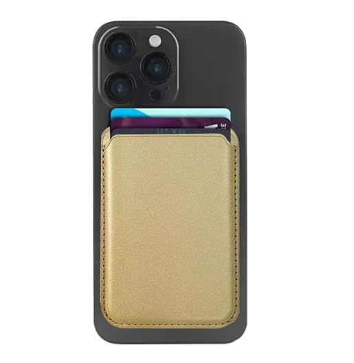 ELMO3EZZ - حامل بطاقات ماج-سيف جلدي مغناطيسي قوي لسلسلة ايفون 16، ملحقات (ماج سيف) تلتصق على سلسلة ايفون 17/16/15/14/13/12 وبروماكس، ذهبي