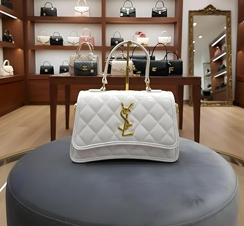 Generic - شنطة بمقبض علوي - جلد مبطن عالي الجودة مع قطع معدنية ذهبية ودرجات لون اسود/ فضي/ بني وخطوط نظيفة لمظهر مصقول واحترافي.