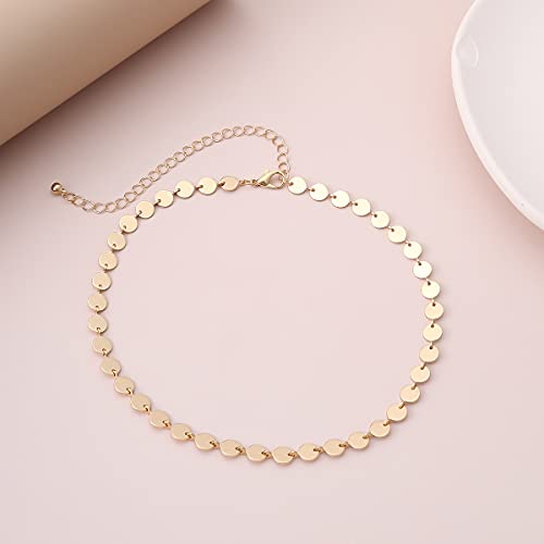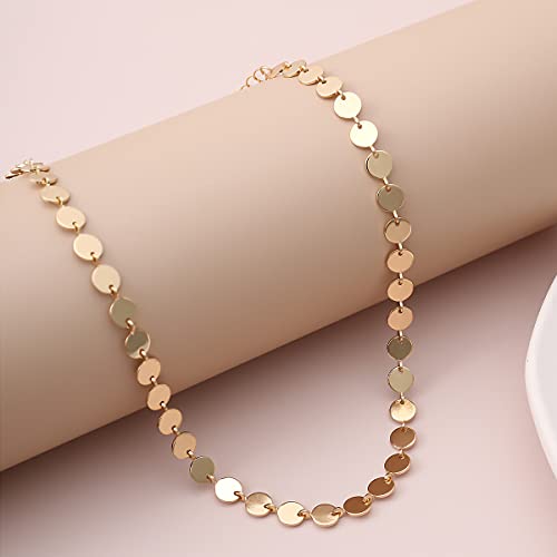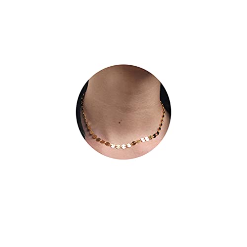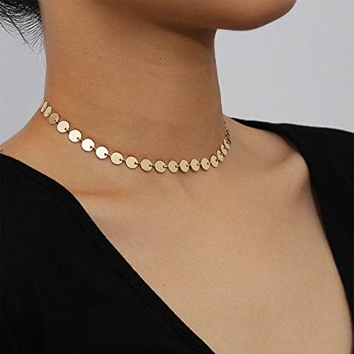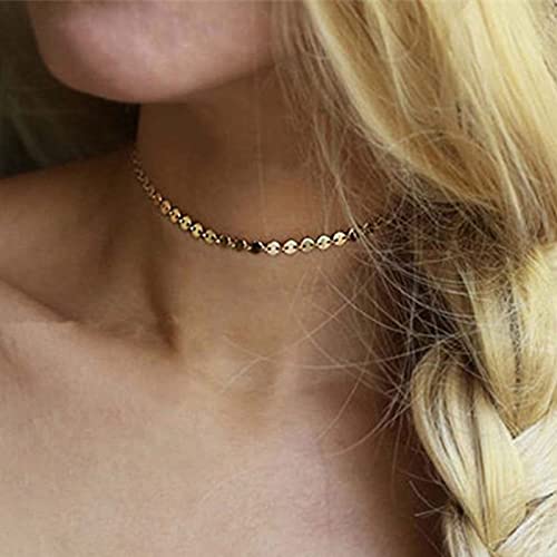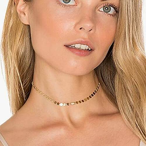 Sttiafay - عقد قصير مزين بالترتر على شكل قرص بدلاية سلسلة ذهبية قصيرة مجوهرات للنساء والفتيات