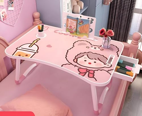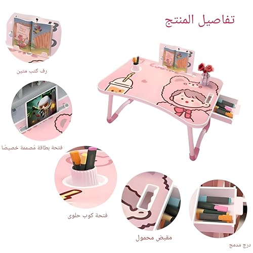 Generic - مكتب كتابة للطلاب - طاولة محمولة مريحة مع اطار قابل للطي ودعم للكتب وحامل اكواب ودرج تخزين مدمج مصمم لمساحات عمل اللابتوب الفعالة.