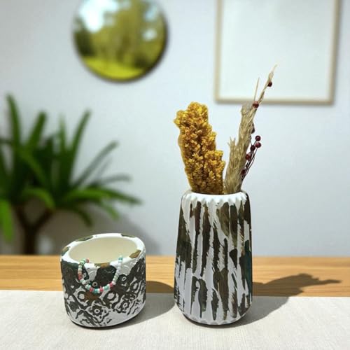Generic - طقم فازة خرسانية يدوية الصنع بنمط مموه وأبيض، فازات مزخرفة، قطعتين من ستوديو أو 7