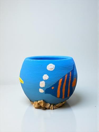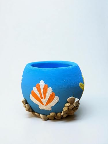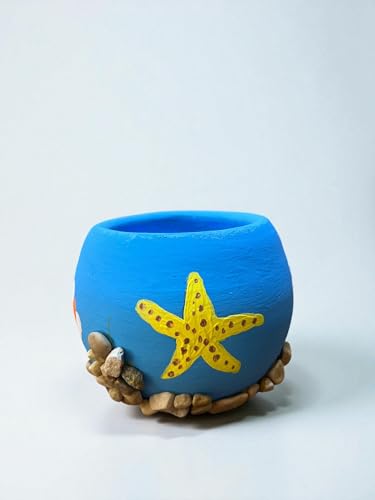 - تصميم مصنوع يدويًا: وعاء فخار جميل يتميز بجزء خارجي أزرق نابض بالحياة مع زخرفة نجم البحر الأصفر المطلية يدويًا وقاعدة من الحجر الطبيعي