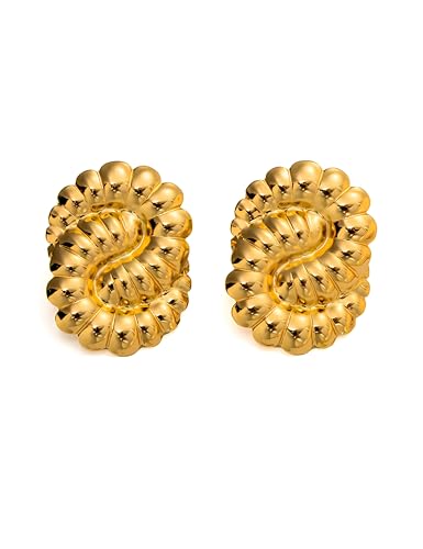Generic - اقراط مرصعة مكتنزة تتميز بأنماط هندسية تجريدية باللون الذهبي مع مربع وقبة وقرص وفيونكة وزهور لمظهر انيق للنساء