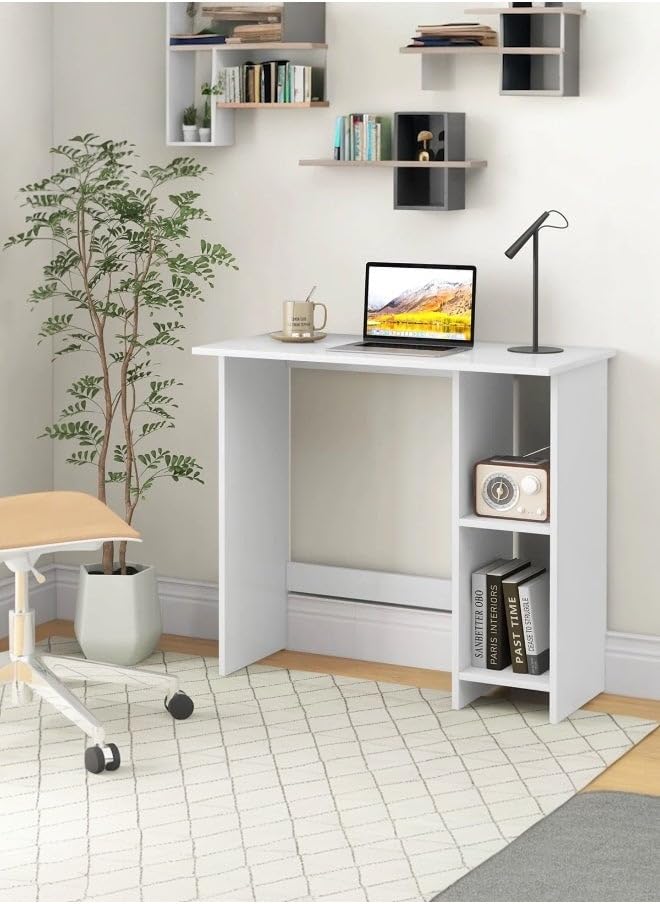 Generic - مكتب دراسة منزلي مع مكتب كتابة حديث، مكتب كمبيوتر مع ارفف مفتوحة للتخزين - خشب - لمسة نهائية ناعمة - ابيض - قطعة واحدة