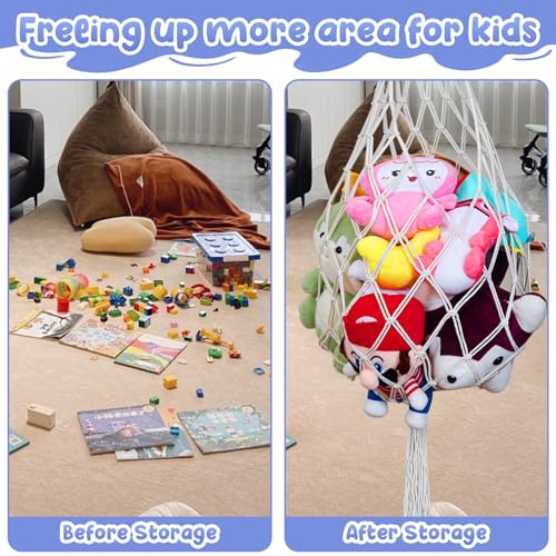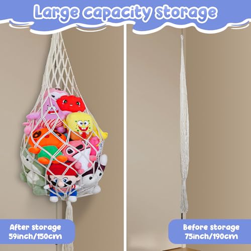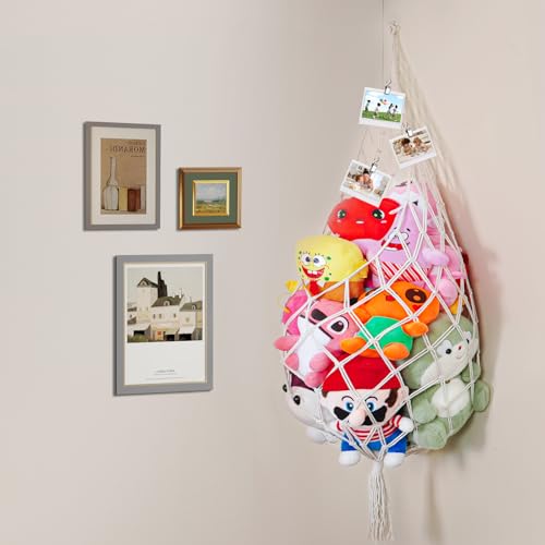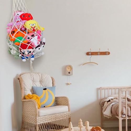 CCYLTL - منظمات تخزين الحيوانات المحشوة - شبكة العاب او زاوية ارجوحة لتنظيم الحيوانات المحشوة، مناسبة كحامل العاب قطيفة على الحائط، ديكور غرفة نوم الاطفال، منظم غرفة لعب حضانة بوهو، حامل حيوانات محشوة