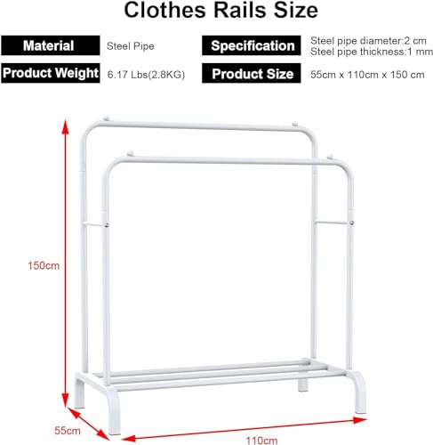 - حامل ملابس معدني بأبعاد 150 × 110 × 40 سم.