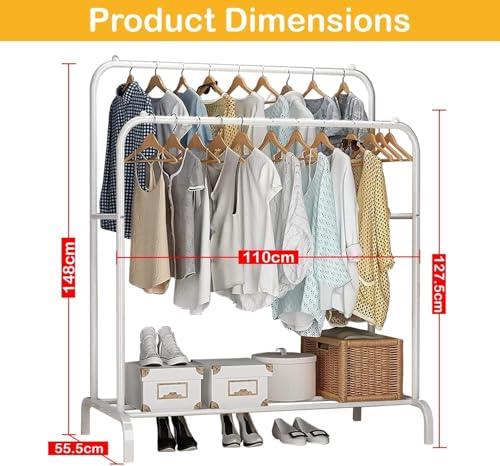 - يبلغ مقاس حامل الملابس المعدني 1.5 م × 1.1 م × 40 سم.