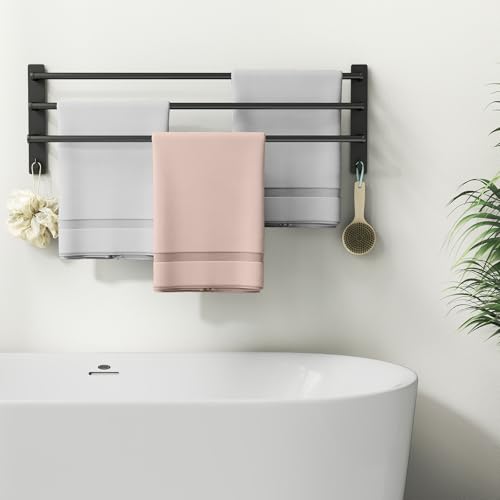 - اختيار جيد: رف مناشف أسود بنمط عصري وبسيط، مثالي للاستخدام في المنزل والفندق والنزل والساونا وحمام ار في وتعليق المناشف حسب الرغبة، كما أنه مجموعة جيدة من هدايا الانتقال إلى منزل جديد أو الذكرى السنوية. إذا كانت لديك أي مشاكل أو احتياجات، فلا تتردد في الاتصال بنا في أي وقت