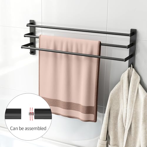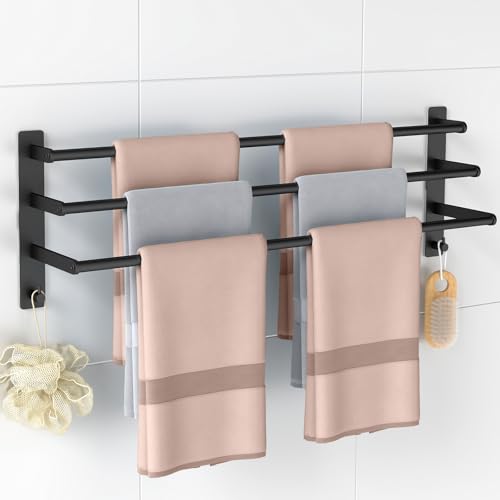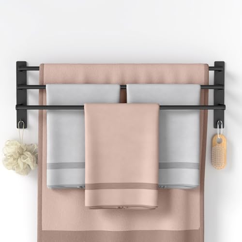 STWWO - حامل مناشف 80 سم من ستو، بدون ثقب، حامل مناشف الحمام، الجدار، 3 قضبان، رف منشفة، حامل مناشف الشاي ذاتي اللصق، حامل مناشف الحمام مع خطافات، يثبت على الحائط، الحمام، المطبخ، اسود