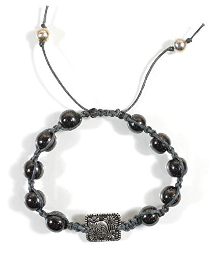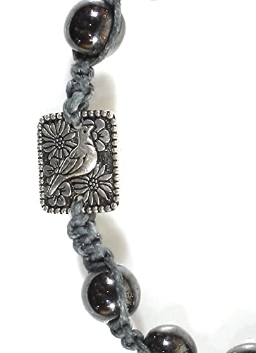 Style ARThouse - سوار مكرامي معقود يدويا مع دلاية على شكل طائر من البيوتر، حجر الهيماتايت، Feathered Friend، للنساء، للبالغين من الجنسين، للرجال