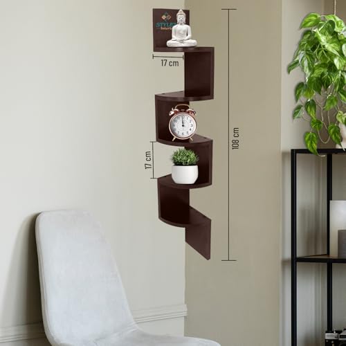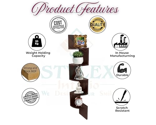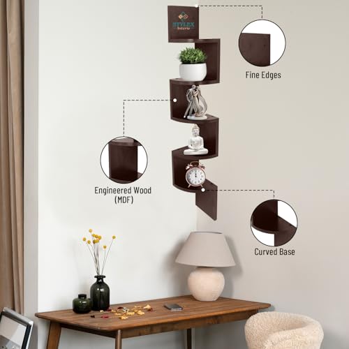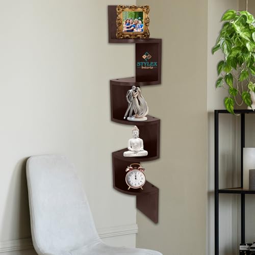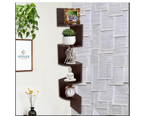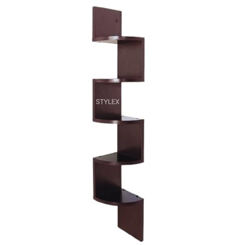 STYLEX INTERIO - رف حائط خشبي من ستايليكس، حامل زاوية خشبي لديكور غرفة المعيشة، رف يثبت على الحائط لغرفة النوم، منظم عرض ديكور غرفة عصري (لمسة نهائية بلون بني)