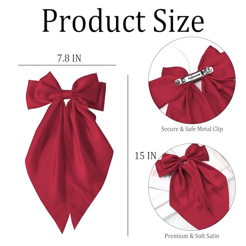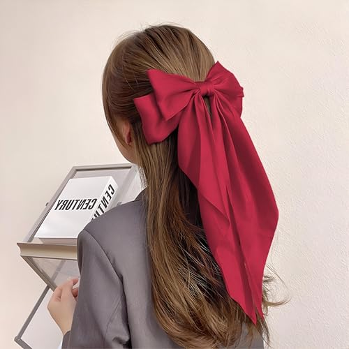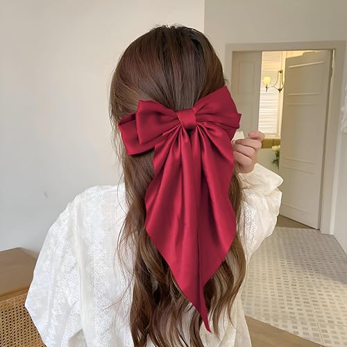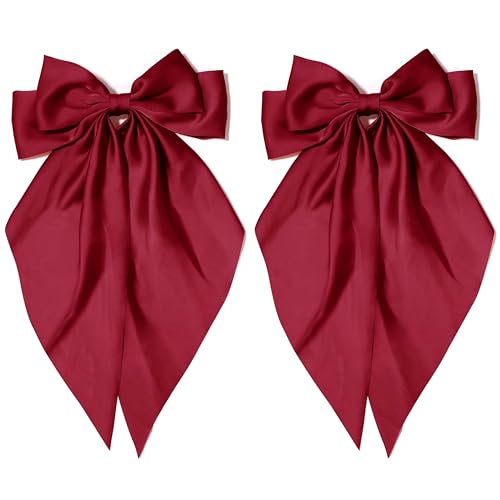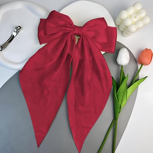 Generic - اكسسوارات تصفيف الشعر - فيونكة شعر كبيرة الحجم من الساتان مع ذيول انيقة، عبوة من قطعتين من مشابك فيونكة صفراء، مشابك معدنية لاطلالة الشعر الانيقة للنساء (قطعتان، احمر)