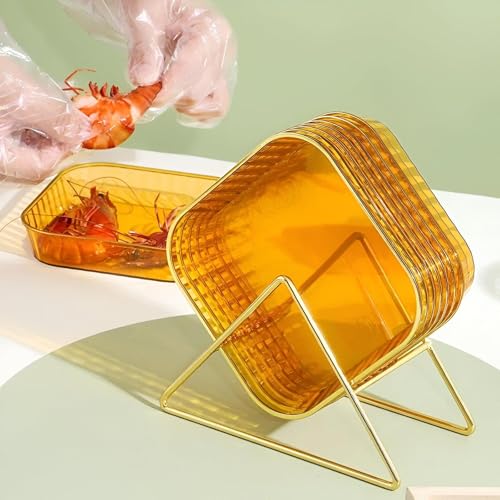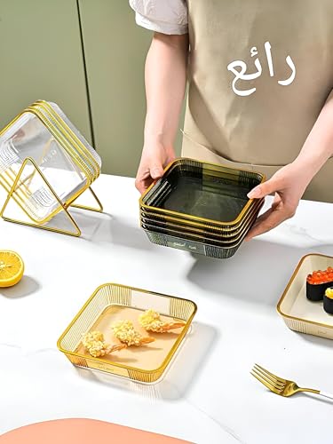Generic - اطباق اكريليك انيقة - تتضمن هذه المجموعة الفريدة 6 لوحات اكريليك نابضة بالحياة وحامل معدني ذهبي، تجمع بين العملية والجمالية العصرية لطاولتك.