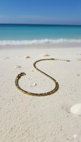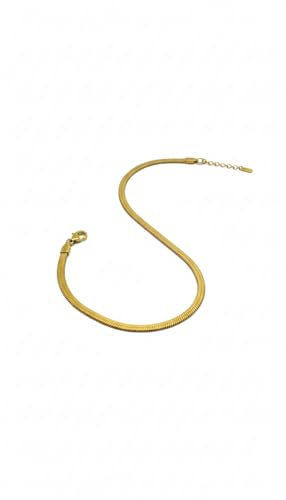 Generic - إسورة سلسلة ثعبانية أنيقة وعصرية | خلخال مطلي بالذهب عيار 18 قيراط | سوار نسائي مسطح ولامع مضاد للصدأ | إكسسوار للارتداء اليومي