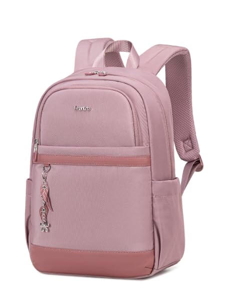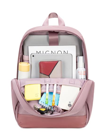 شنطة ظهر أنيقة بلون وردي، مقاس 40× 27.5× 13 سم، مزودة بأشرطة شبكية مبطنة