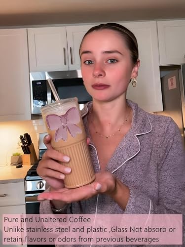 - هذا الكوب الأنيق مثالي لأولئك الذين يقدرون الجمال والعملية. سواء كنت تستمتع بقهوة الصباح أو السموذي المنعش أو الكوكتيل المسائي، فإن زجاج البوروسيليكات المقاوم للحرارة يضمن بقاء مشروبك على ما يرام. توفر تفاصيل الفيونكة الزهرية اللافتة للنظر وتصميمها المضلع المزخرف لمسة جمالية عصرية وساحرة، رائعة للهدايا أو الاستخدام الشخصي. يضيف الغطاء والماصة المتضمن عملية، كما أن ميزة آمنة للغسل في غسالة الأطباق تجعل التنظيف سريعًا وسهلاً. كو