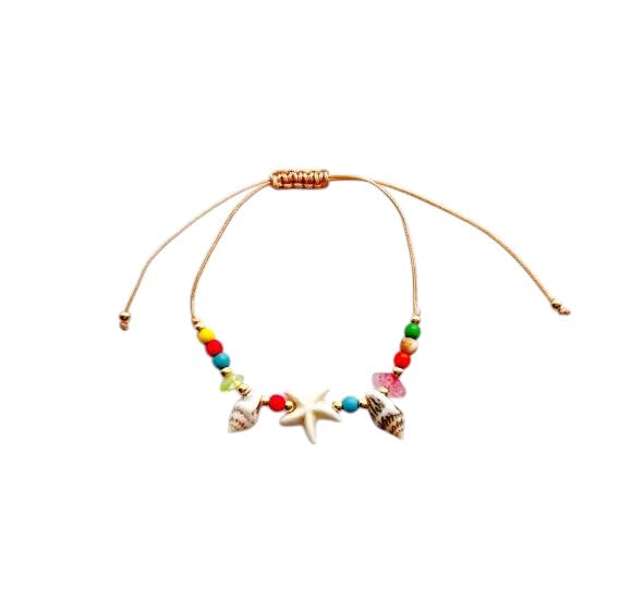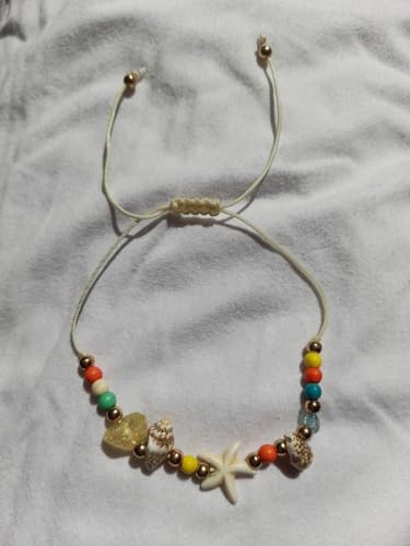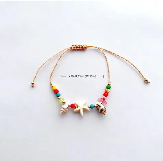 Generic - سوار أنيق بنمط بوهيمي بصدف طبيعي ونجم البحر بمقاس قابل للتعديل للنساء، قطعة واحدة