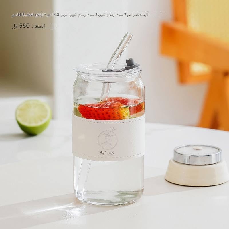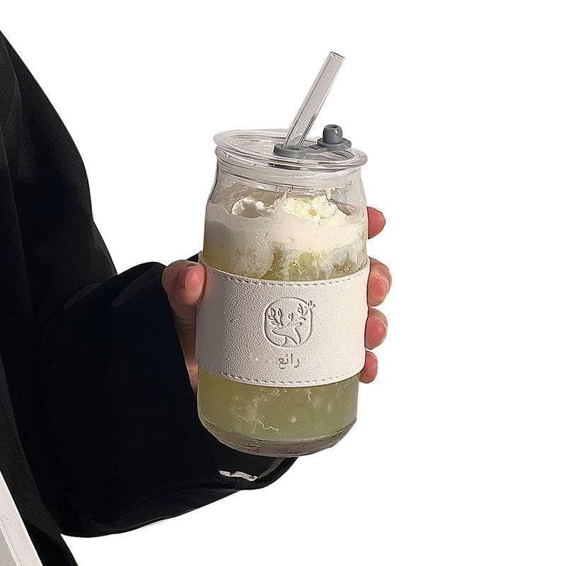 - هذا الكوب الزجاجي بسعة 500 مل يتميز بتصميم أنيق مع غطاء اكريليك وشفاطة زجاجية مما يجعله مناسبًا للمشروبات الساخنة والباردة. يضيف مقبضه الجلد لمسة من الأناقة ويمنحك قبضة مريحة، مما يجعله مثاليًا للاستخدام اليومي والتنقل.
