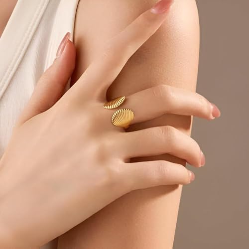 Generic - مجوهرات هدية انيقة - خاتم جميل قابل للتعديل للنساء، تصميم مذهل من الستانلس ستيل، مثالي لأعياد الميلاد والذكرى السنوية ورحلات الشاطئ