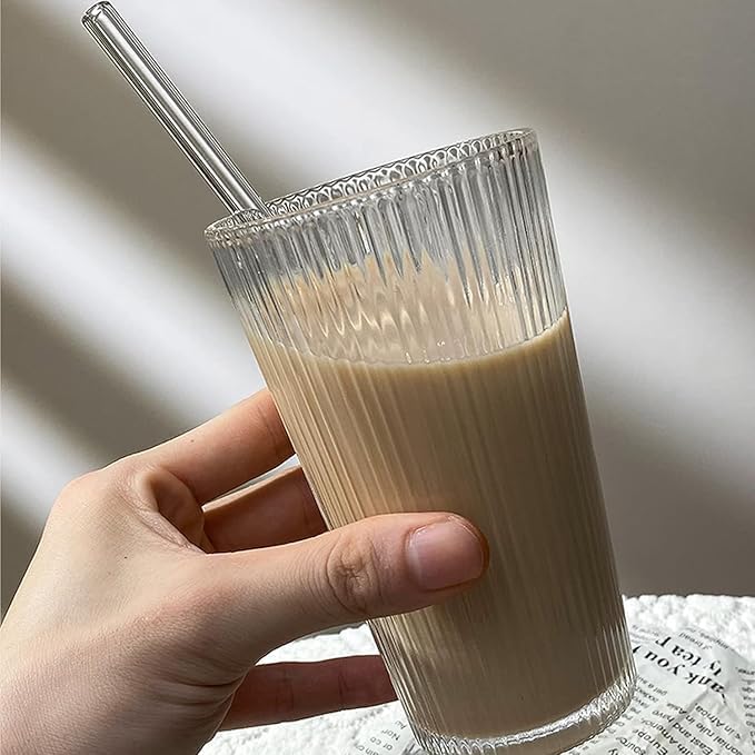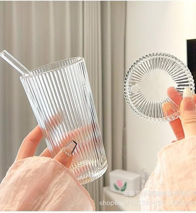 - تصميم عصري وأنيق: كوب زجاجي بنمط مخطط فينتج مثالي للاستخدام في المنزل والمكتب والسفر