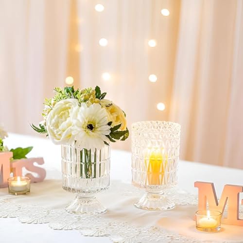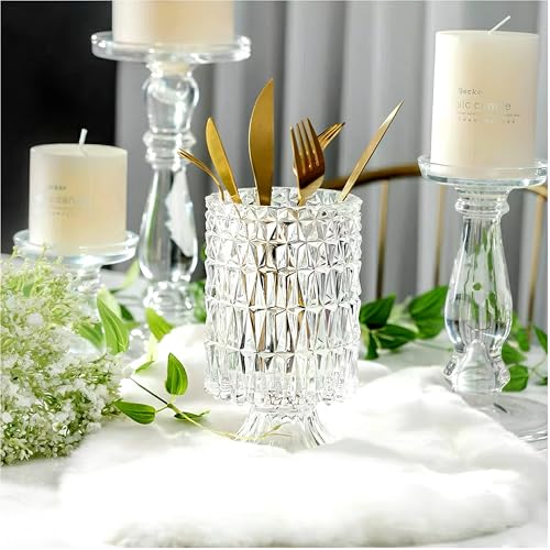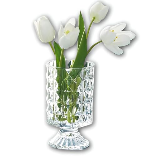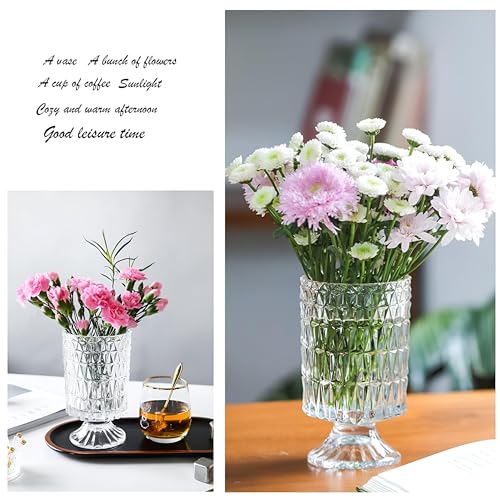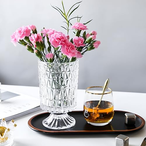 Generic - فازة زجاج أنيقة - فازة ديكور كبيرة بقاعدة مزخرفة للمنازل والمكاتب وترتيبات الزهور في المناسبات وحفلات الزفاف والعطلات