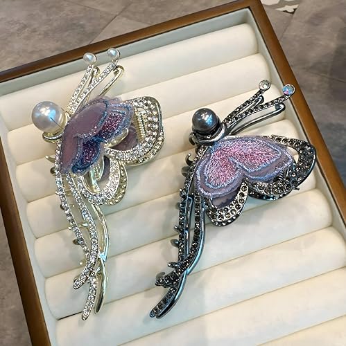 Generic - مشبك شعر أنيق - تصميم فراشة أنيق مع زينة فاخرة من اللؤلؤ والماس (2 قطعة باللون المعروض)
