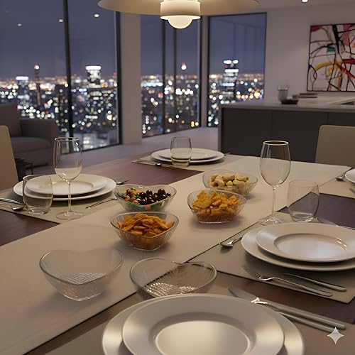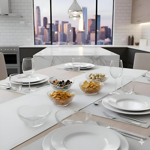 • مصنوعة من زجاج عالي الجودة، هذه الأطباق متينة ومصممة للاستخدام المتكرر، مما يضمن طول العمر مع الحفاظ على مظهرها الشفاف والمصقول، مثالية لأولئك الذين يقدرون الجمال والعملية.