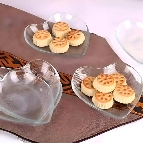 Generic - طبق زجاجي انيق على شكل قلب - طبق تقديم صغير للمكسرات والحلويات، طقم من 6 قطع لاعداد طاولة عصري