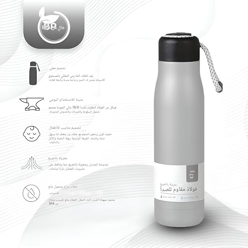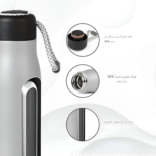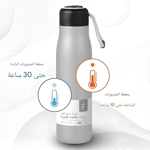 - تتميز بتقنية العزل المزدوج، زجاجة المياه هذه قادرة على الحفاظ على مشروباتك ساخنة أو باردة لمدة 24 ساعة رائعة. سواء كنت بحاجة إلى مشروب ساخن أثناء تنقلاتك الصباحية أو مشروب بارد منعش في الجيم، فإن هذه الزجاجة ستلبي احتياجاتك.