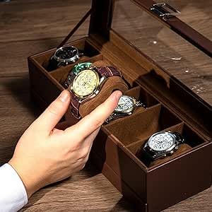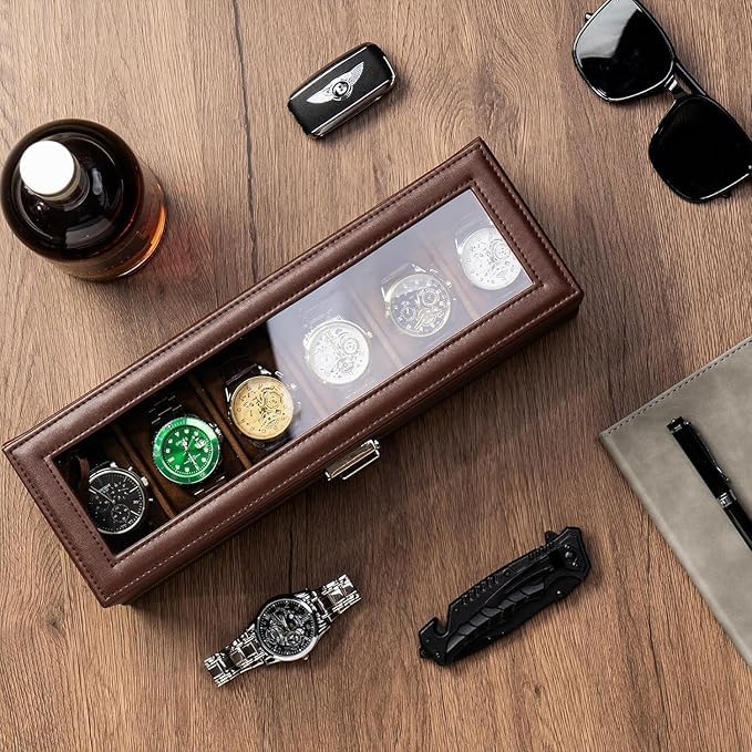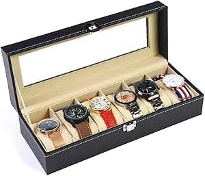 Generic - حافظة ساعات جلدية أنيقة مع 6 أماكن للتخزين