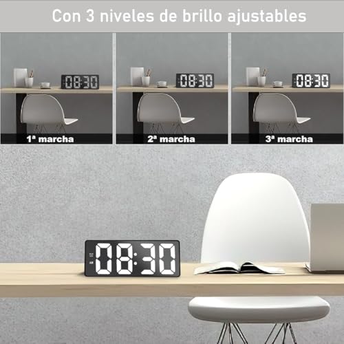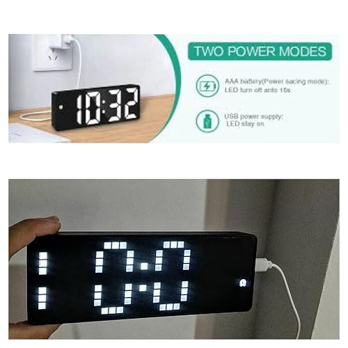 Generic - منبه بشاشة رقمية ليد انيقة مع خاصية الغفوة وعرض التاريخ ودرجة الحرارة واضاءة قابلة للتعديل وتشغيل مزدوج بالبطارية او usb والاختيار بين 12 او 24 ساعة - لون أسود