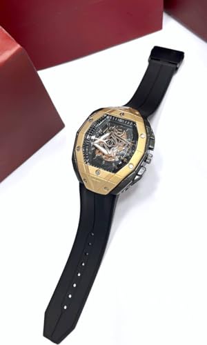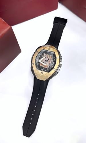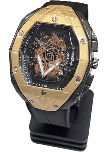 Generic - ساعة انالوج أنيقة للرجال - ساعة يد بسوار مطاطي - متينة وخفيفة الوزن للأزياء اليومية (إطار ذهبي، أسود)