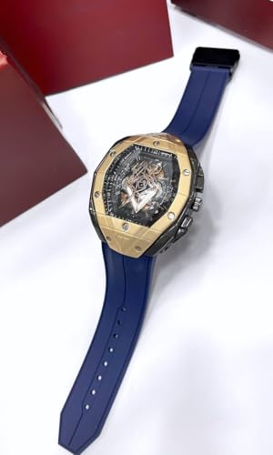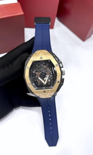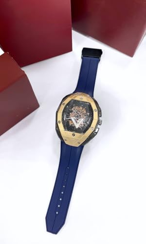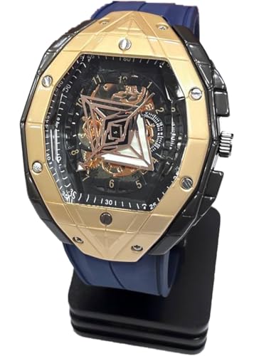 Generic - ساعة انالوج انيقة للرجال بسوار مطاطي - متينة وخفيفة الوزن ومثالية للازياء اليومية (اطار ذهبي، ازرق)