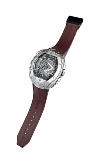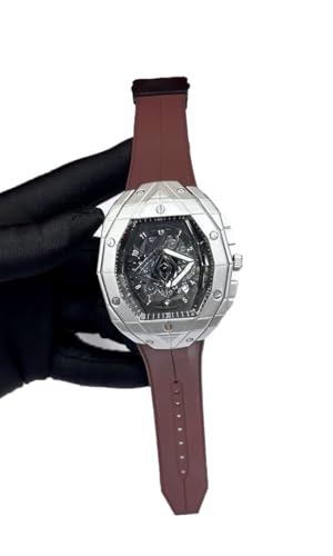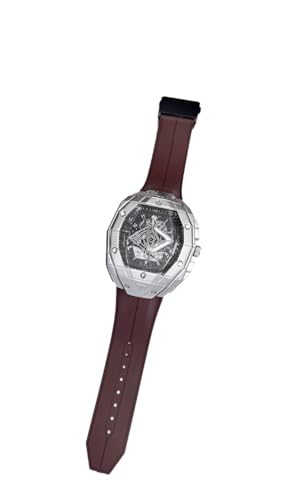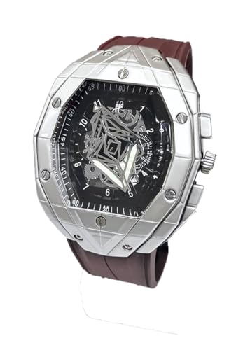 Generic - ساعة انالوج انيقة للرجال بسوار مطاطي - متينة وخفيفة الوزن ومثالية للازياء اليومية (اطار فضي، بني)